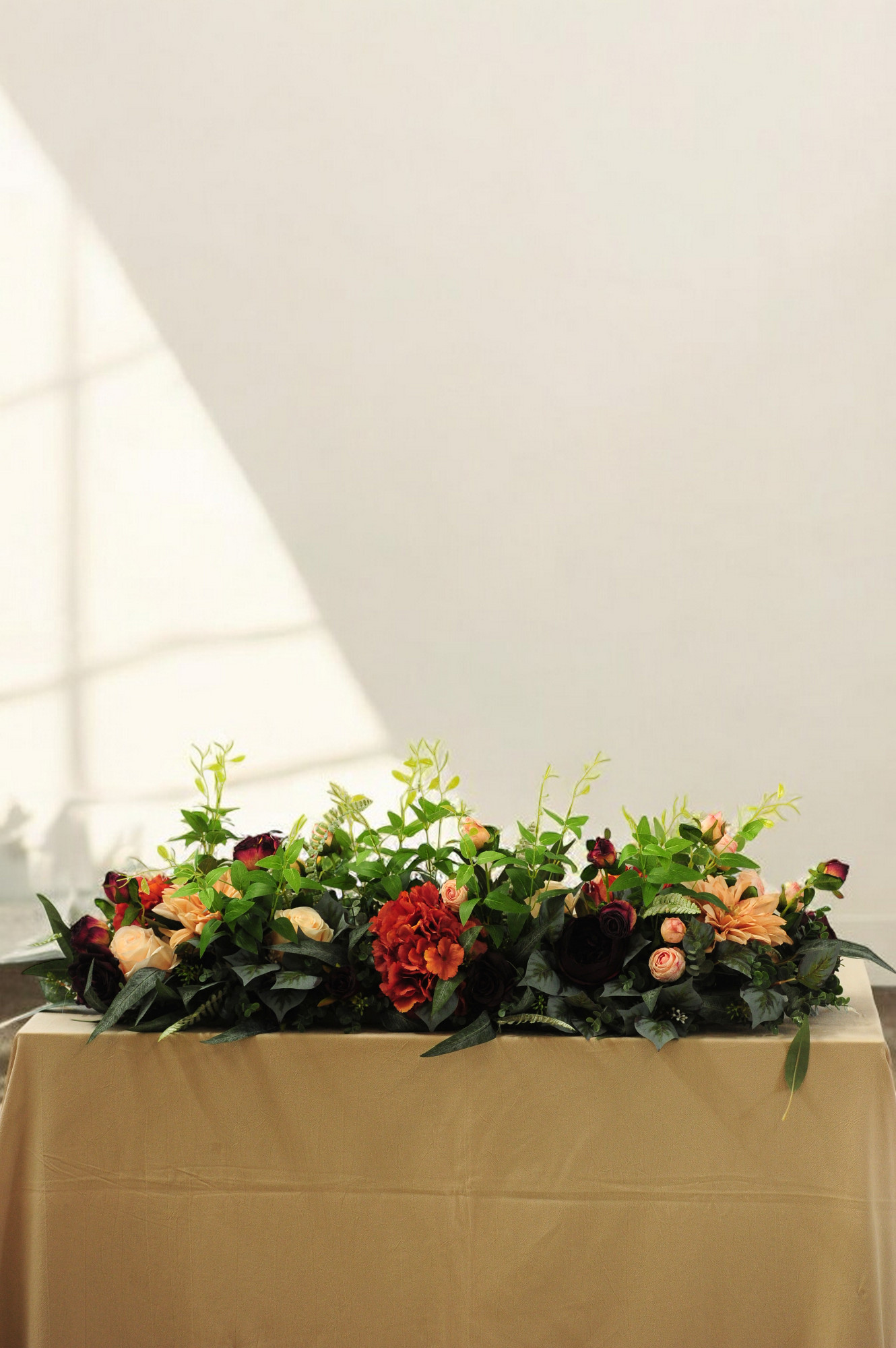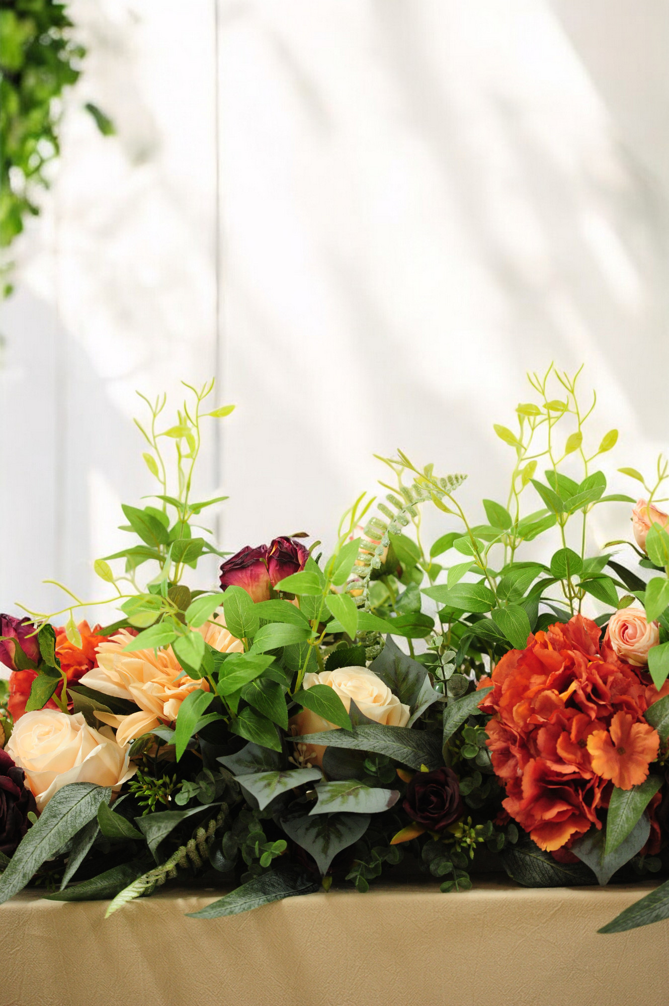 This Charlotte Floral Meadow brings together all the finest blooms from the Charlotte Collection to create an option for aisle, ceremony or top table styling. A beautiful mix of rust, burgundy and lush foliage completes the look.