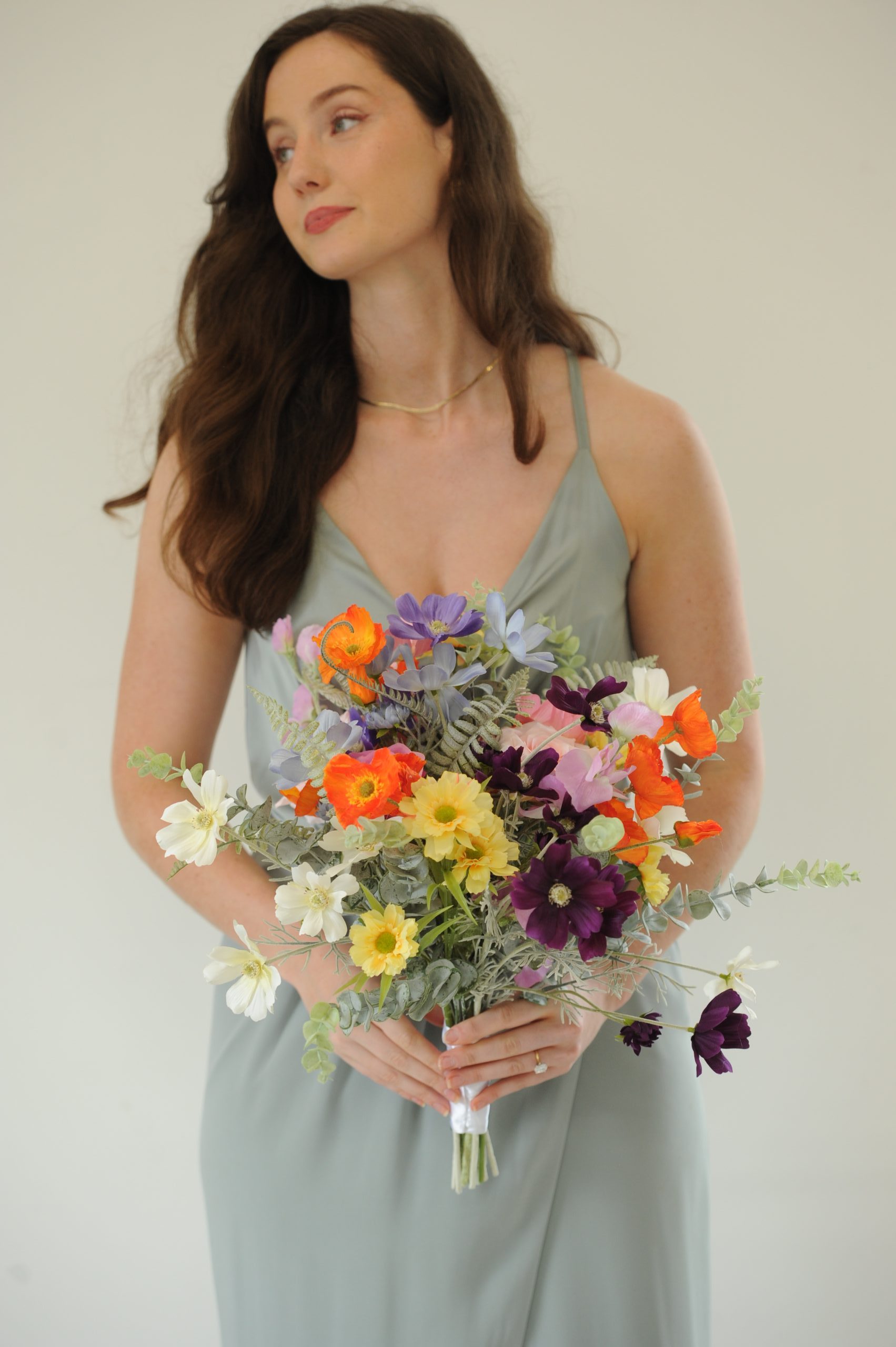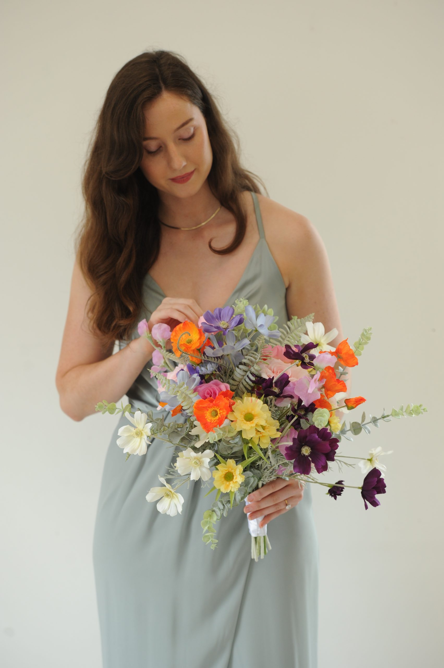 They are carefully chosen for their colour, texture and movement so they photograph beautifully and feel as close as possible to fresh florals.