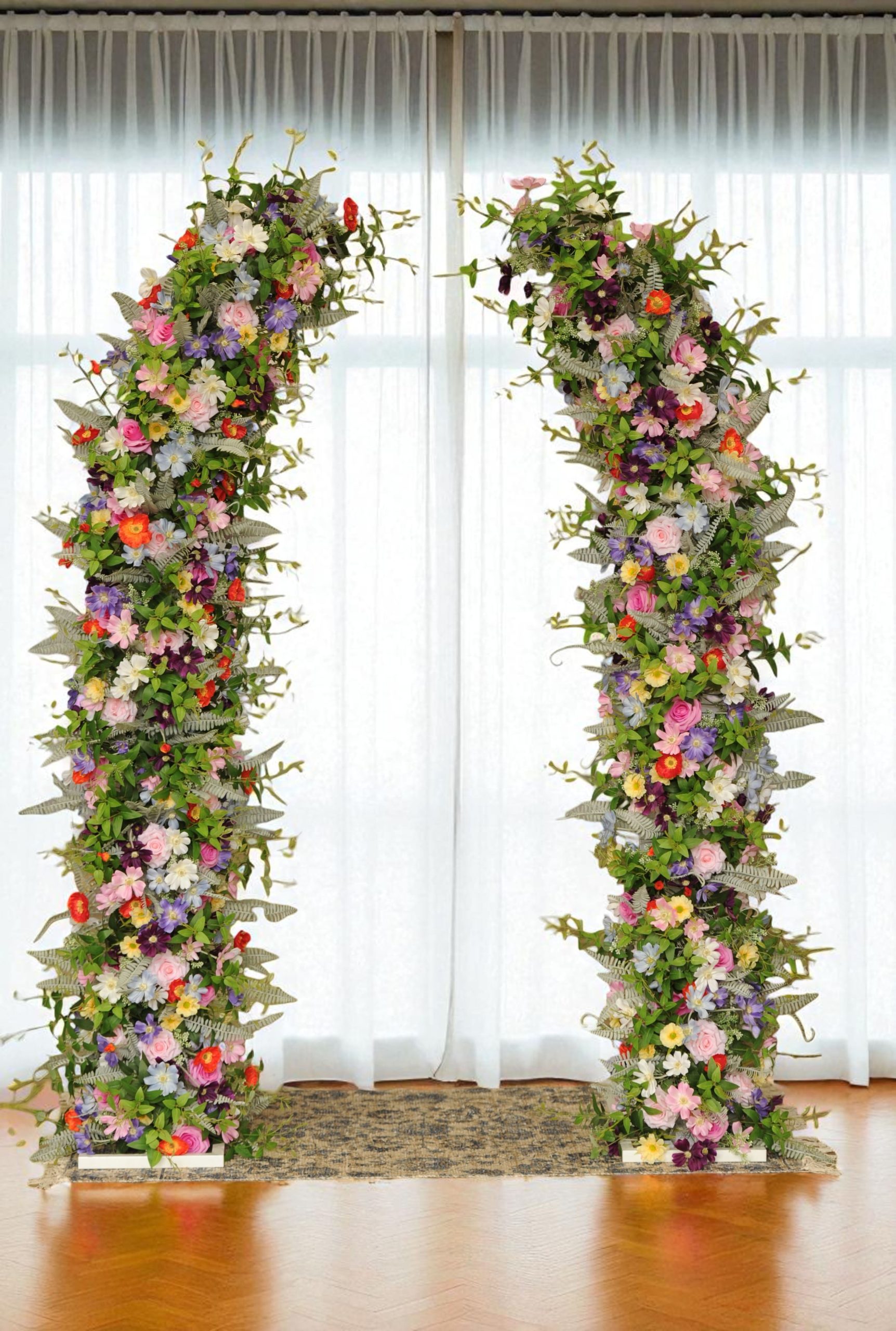 Perfect for aisle entrances, ceremony backdrops, or photo moments, these statement pieces add instant luxury without the fuss of fresh flowers.