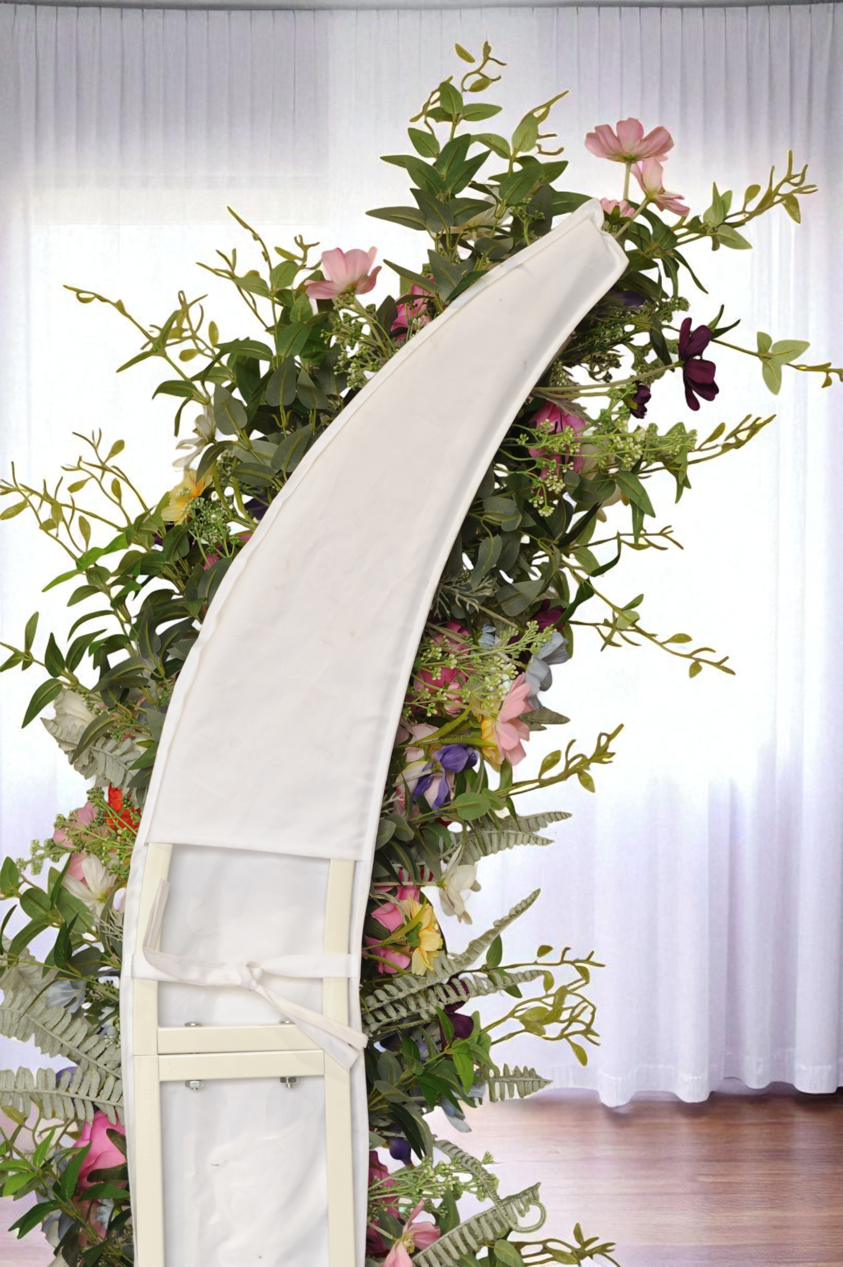 Frame your ceremony with our Megan Floral Pillars – a romantic duo of lifelike silk blooms featuring white roses and lush greenery. Each pillar includes a sleek, sturdy frame that assembles in minutes, with floral sleeves that simply slide into place for a flawless finish.