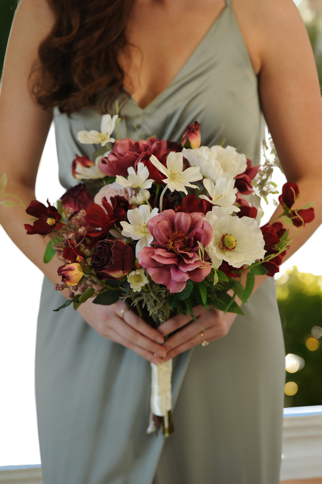 The Sophia Bridesmaid Bouquet has been created with a delicate blend of deep blush garden berry, nicolli eucalyptus, and wisteria foliage. Sophia exudes timeless charm and natural beauty.